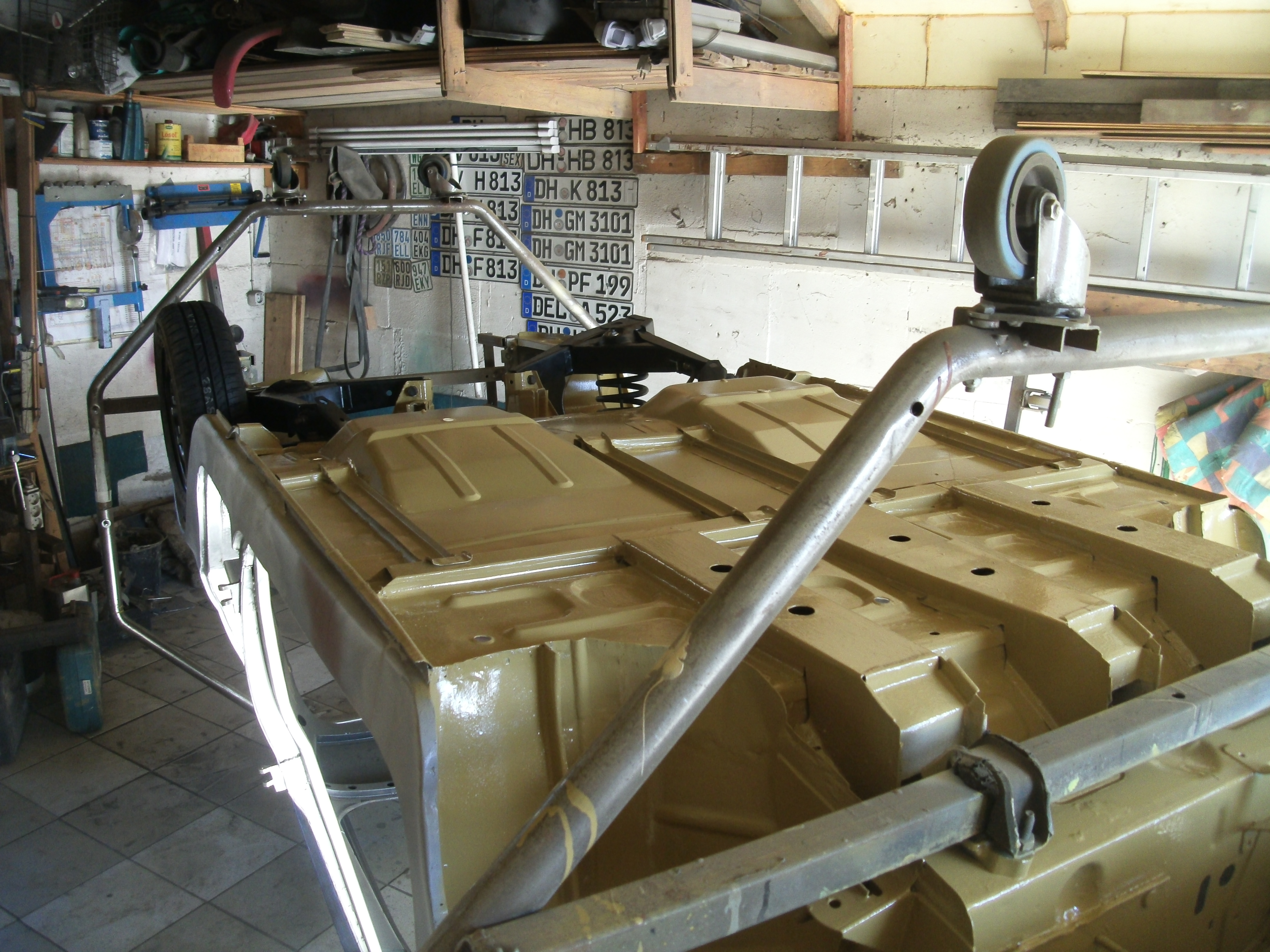 Boden fertig lackiert, Fahrwerk kann rein.